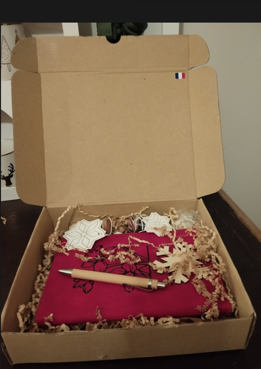 Coffret d’écriture poétique Pause Lettres comprenant un carnet, un stylo en bois et des éléments choisis avec soin, préparé à la main.